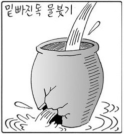 라는 속담이 있습니다. “밑 빠진 독에 물을 부으면 안된다.”는 화자의 답답함을 너무나 강조하는 표현입니다.